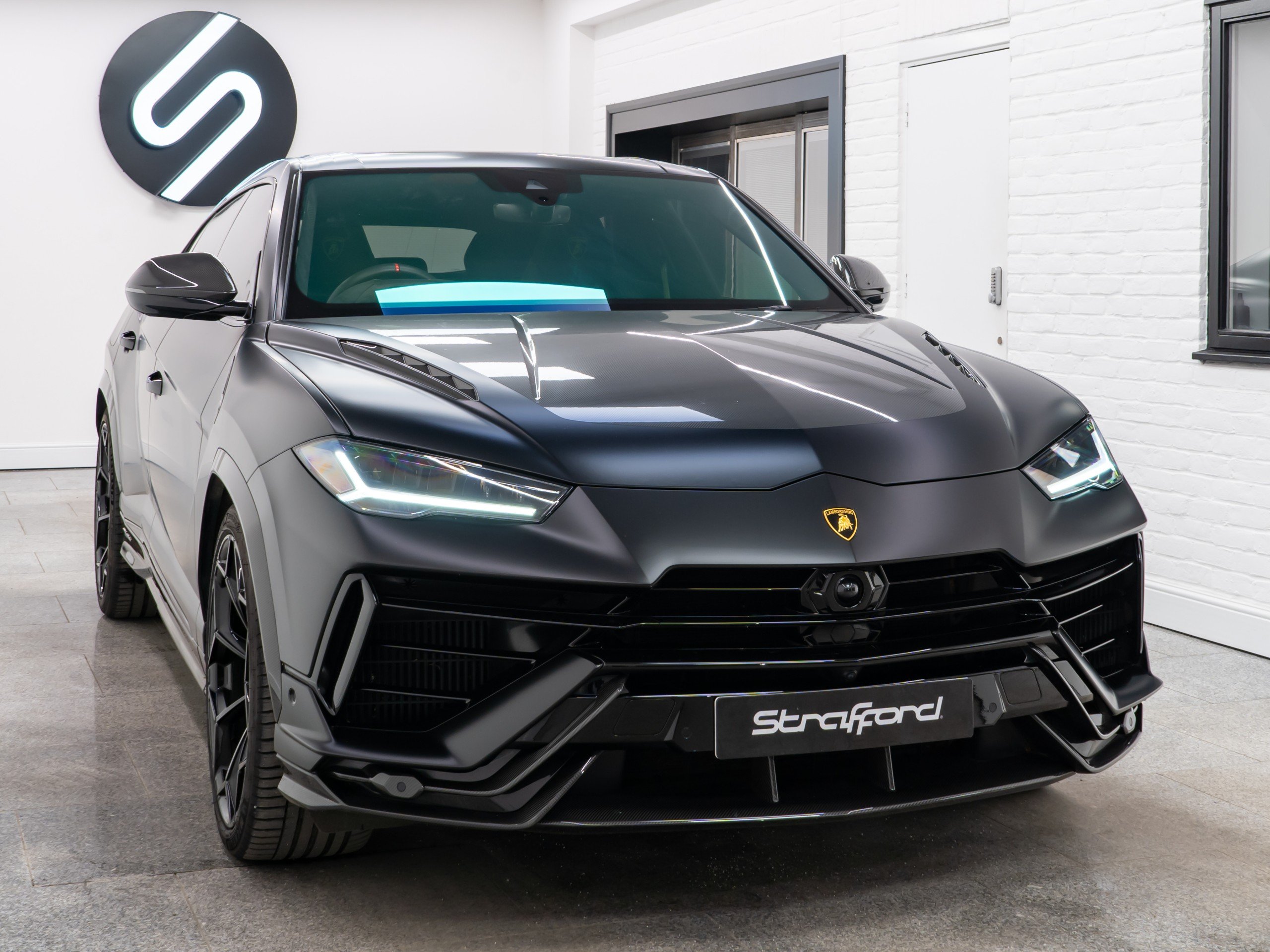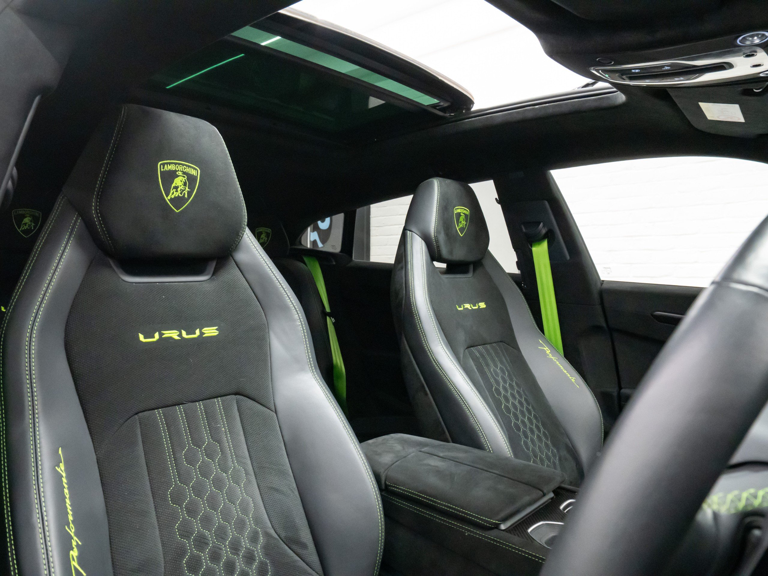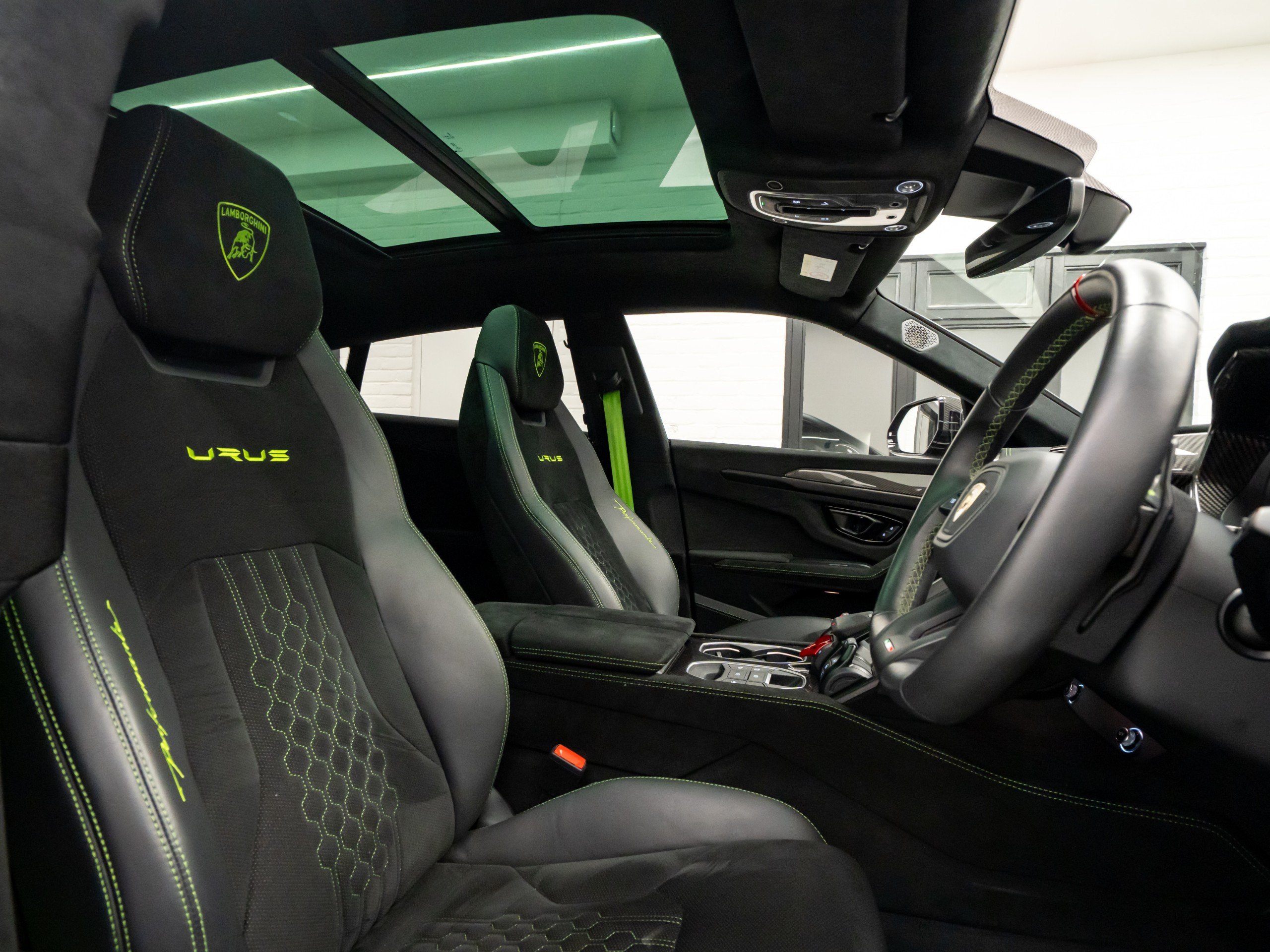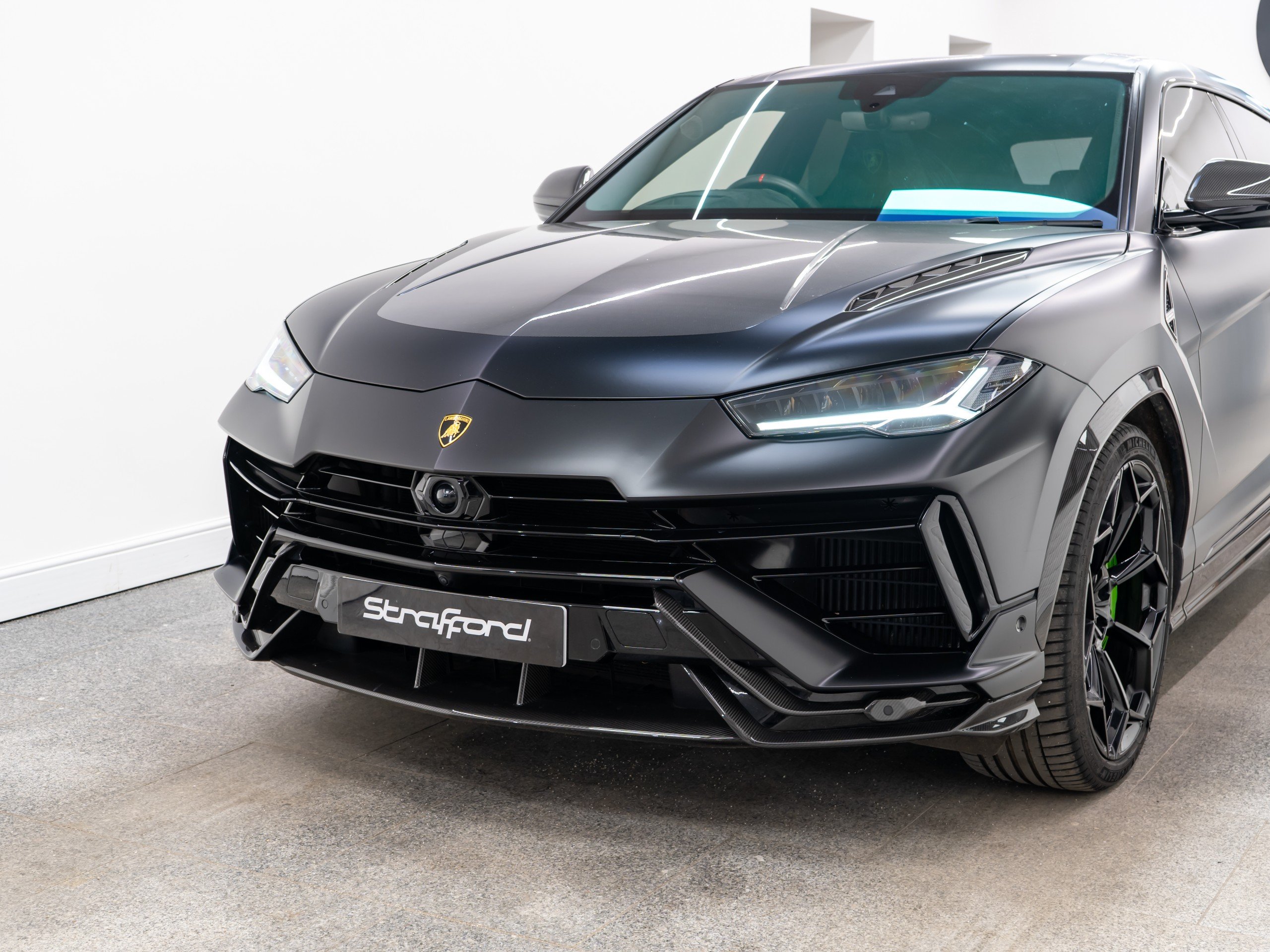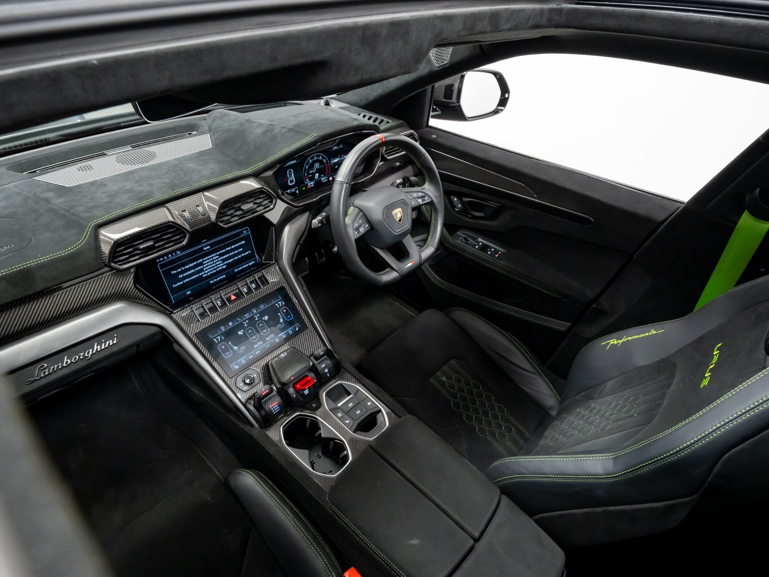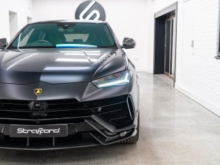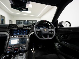 Available now from our Brighton location is this exceptional 2023 Lamborghini Urus Performante covering 28,786 miles from new and supported by a full Lamborghini scheduled service history. Finished in the striking Nero Helene with a full satin PPF and paired with a beautifully specified full Alcantara Performante interior in black, complemented throughout by Verde Fauns green contrast detailing. Vehicle specification: - Nero Helene (shiny black with satin full PPF applied when new) - Full exterior carbon fibre package (shiny) - 23-inch Pelope alloy wheels in shiny black - Titanium wheel bolts - Green brake calipers - Acoustic and heat insulated glazing - Heated and heat-reflective windscreen - Panoramic glass roof - Full Alcantara Performante interior in black - Verde Fauns green seat belts, contrast stitching and accents - Alcantara headliner - Dark Alcantara interior package - Black carpets with Verde Fauns green stitching - Shiny carbon fibre air vents - Shiny carbon fibre instrument cluster surround - Ambient lighting package - Front seat heated and ventilated - Front seat massage function - Rear seat heating - Sport steering wheel in full leather - Heated steering wheel - Verde Fauns green stitching on steering wheel - Bang & Olufsen 3D sound system - DAB digital radio - Head-Up Display - Full Advanced Driver Assistance Systems package - Parking assistance systems - Preparation for vehicle tracking system - Active carbon cabin air filtration system This vehicle benefits from the following warranty and service plans: - 4 year Lamborghini maintenance pack - 4th year Lamborghini warranty extension Service history: 03/10/2023 – 8,463 miles – Lamborghini Service 11/10/2024 – 14,791 miles – Lamborghini Service 22/10/2025 – 25,902 miles – Lamborghini Service The next service will fall due on 21/10/2026 and will be carried out as part of the existing service plan on the vehicle at no cost to the new owner. -