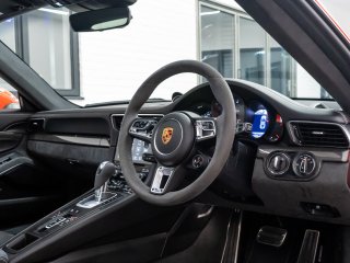 Available for viewing at our Brighton showroom or home delivery in our enclosed trailer is this 2018 (68) 991 (Gen2) Carrera 4 GTS fitted with £23,305 in factory options as follows: - Porsche Doppelkupplung (PDK) (£2,483) - Alcantara® Package GTS including Carmine Red/Rhodium Silver GTS interior package (£2,391) - GTS interior package (£2,324) - Adaptive Sports seats Plus (18-way, electric (£1,991) - Lava Orange Special Paint (£1,877) - LED main headlights in black including Porsche Dynamic Light System (PDLS) (£1,772) - Electric slide/tilt glass sunroof (£1,592) - Rear-axle steering (£1,592) - ParkAssist (front and rear) with reversing camera (£1,128) - BOSE® surround sound-system (£1,002) - Porsche Entry & Drive (£774) - Automatically dimming mirrors with integrated rain sensor (£387) - Privacy glass (rear side windows and rear window) (£387) - Heated multifunction steering wheel (£329) - Speed limit display (£294) - Rear Wiper (£245) - Cruise control (£228) - Power steering Plus (£185) - 20-inch Carrera S wheels (£0) - Alcantara® Package GTS in conjunction with GTS interior package Rhodium Silver (£0) - Electric folding exterior mirrors (£0) - Porsche Active Suspension Management (PASM) incl. ride height lowered by 10 mm (£0) Service history: 30/11/2020 - 16139 miles - Porsche Centre Nottingham 03/11/2022 - 20832 miles - Porsche Centre Brooklands Tyres are all matching Michelin Pilot Sport 4 S having been replaced at its November 2022 service. With the car is its 2 keys, book packs, HPI Clear report and V5 logbook showing 3 former keepers. Low rate finance is available and part exchange is welcome. -