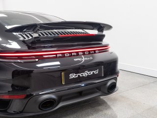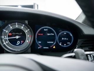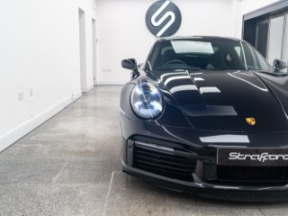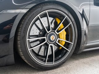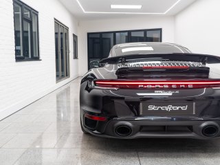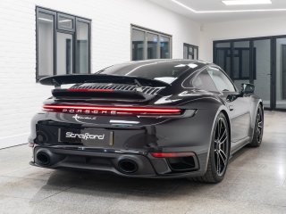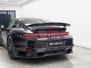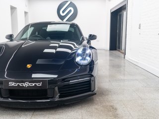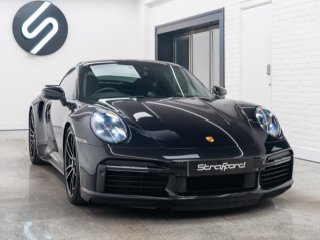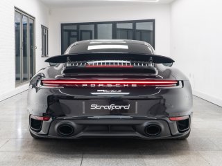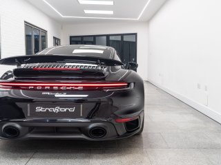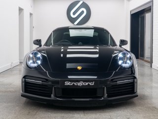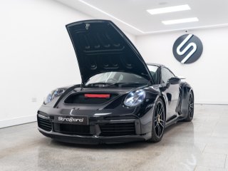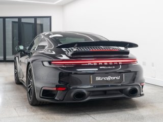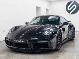 Available for home delivery in our enclosed trailer or collection from our Brighton HQ is this 2023 Porsche 911 992 Turbo S finished in Jet Black Metallic and covering 11662miles. The vehicle has recently undergone an ES700 Titanium Stage-2 performance package install by the well regarded ES Motors resulting in 840bhp rolling road reading. The invoice for these works is with the vehicle totalling £11700 and itemises the 3” ES Titanium Exhaust System with Drone Chambers and Tubes, ES Custom ECU Tune and suspension setup. As standard the 992 Turbo S is very well equipped, featuring - BOSE sound - Porsche Ceramic Composite Brake (PCCB) - Rear axle steering - Sport Chrono package incl. mode switch - Porsche Active Suspension Management (PASM) - Porsche Dynamic Chassis Control (PDCC) - Porsche Active Aerodynamics (PAA) - Exterior mirror lower trims in exterior colour - Porsche Dynamic Light System Plus (PDLS Plus) - Electric folding exterior mirrors incl. courtesy lighting - Cruise control - ParkAssist front and rear including reversing camera - Porsche Vehicle Tracking System (PVTS) In addition this particular example features the following individual cost options: - Sports exhaust system (tailpipes in Black) (£2179) - Front axle lift system (£1708) - Electric slide/tilt glass sunroof (£1591) - Porsche Entry and Drive (£387) - Privacy Glass (£387) - Tinted LED Main Headlights with Matrix Beam (£433) Benefiting from the remainder of its Porsche manufacturer warranty this vehicle is covered until early 2026. With the vehicle comes its two keys, book packs, a clear HPI report and a V5C logbook showing 2 former keepers. Low-rate finance available subject to underwriting and part exchange is welcome. -
